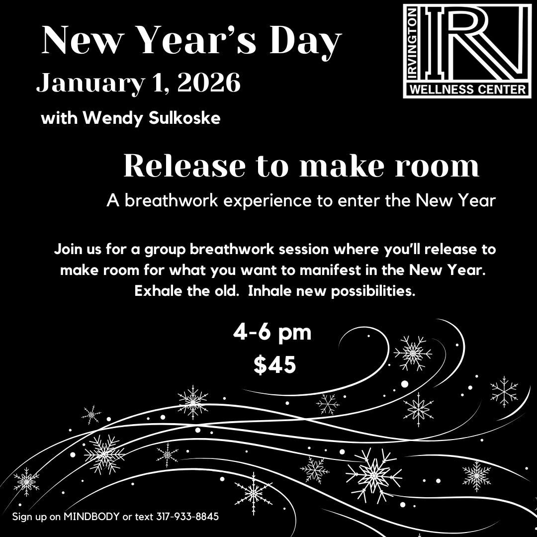 Join us for a group breathwork session where you’ll release to make room for what you want to manifest in the new year. Exhale the old. Inhale the new possibilities.
